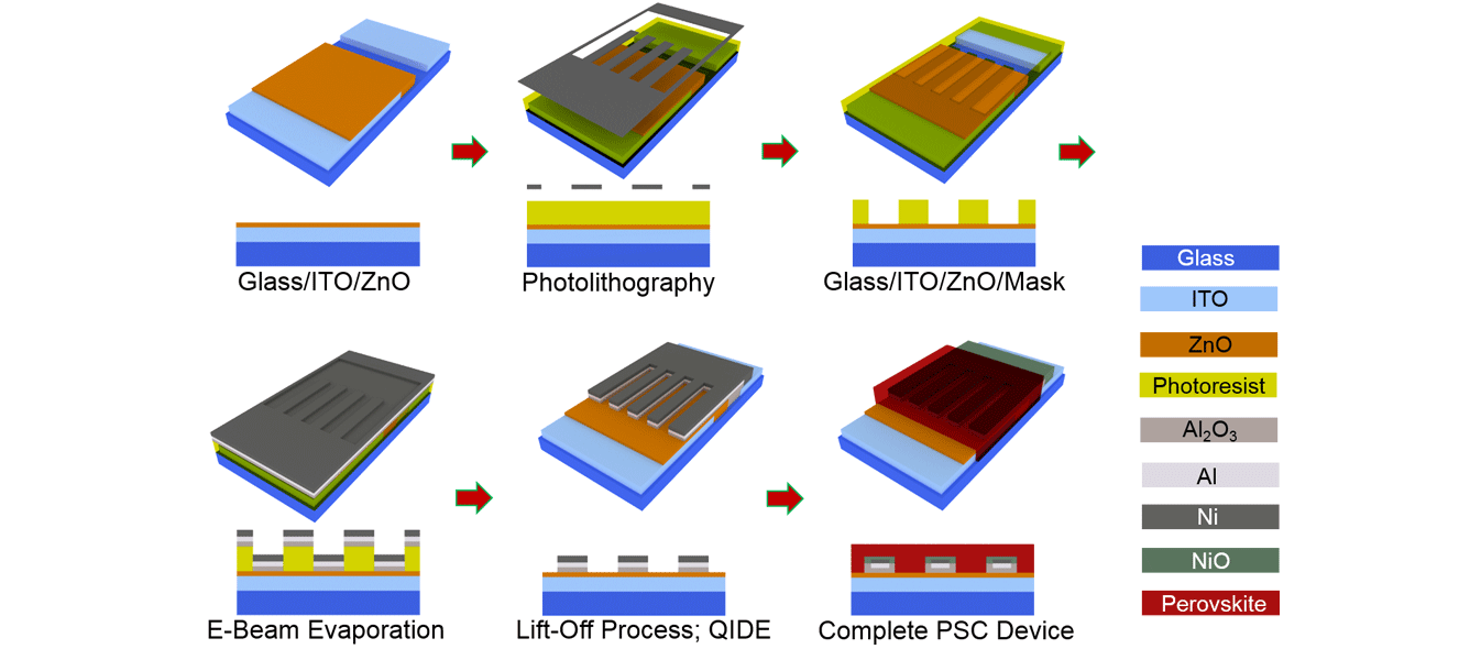 Perovskite is a material which is incredibly good at taking in light and converting it to electrical energy. However, perovskite solar cells (PSCs) are currently built using a “sandwich structure”, which requires a conductive and opaque electrode above and below the photosensitive perovskite material, limiting the directions in which they can receive light, which reduces the overall device efficiency.